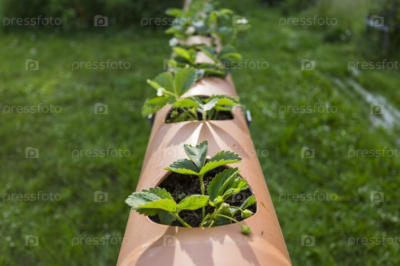 Высокая клубничная грядка в круглой трубе, садовый инвентарь