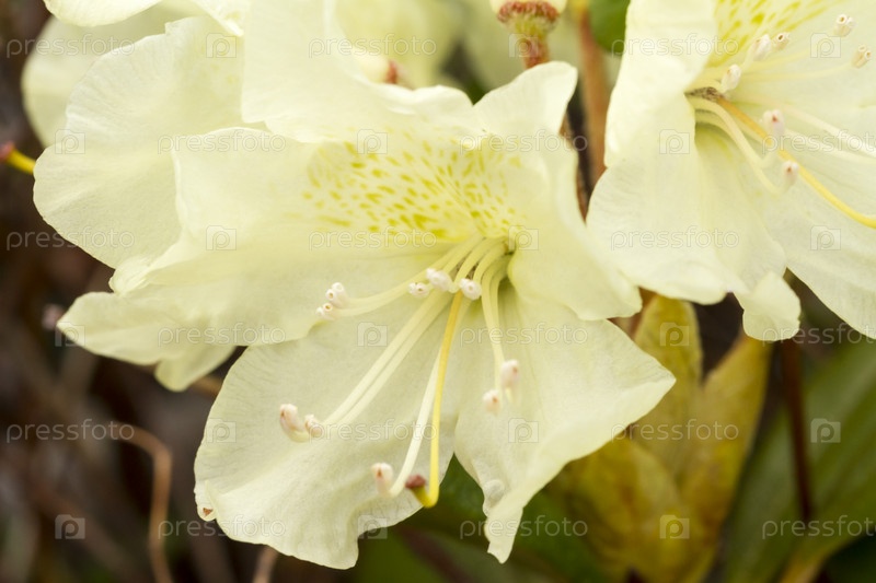 Желтый нежный рододендрон. Полуостров Камчатка, Россия. Крупный план изображения