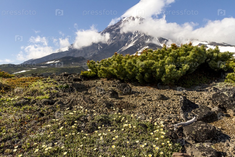 Вид на стратовулкан Вулкан Корякский, Камчатка, Россия