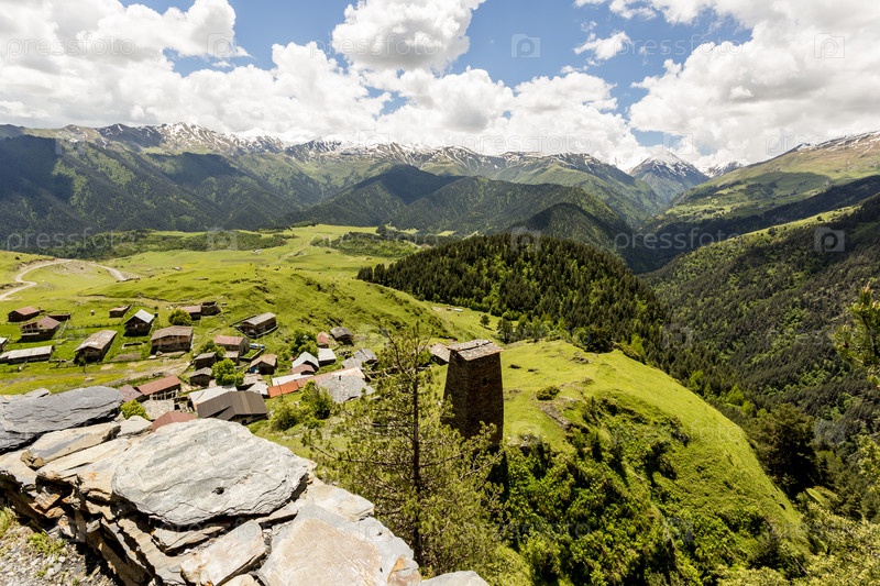 Небольшая горная деревня Омало. Грузия, Тушетия, Кавказские горы