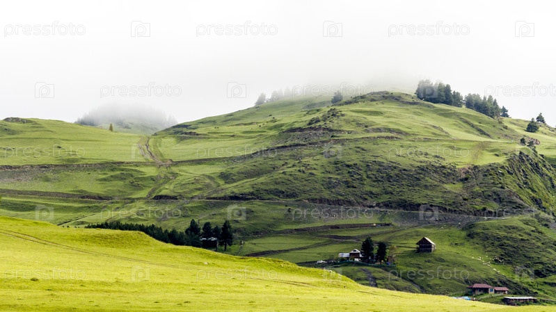 Горная деревня Омало в утреннем тумане. Грузия, Тушети