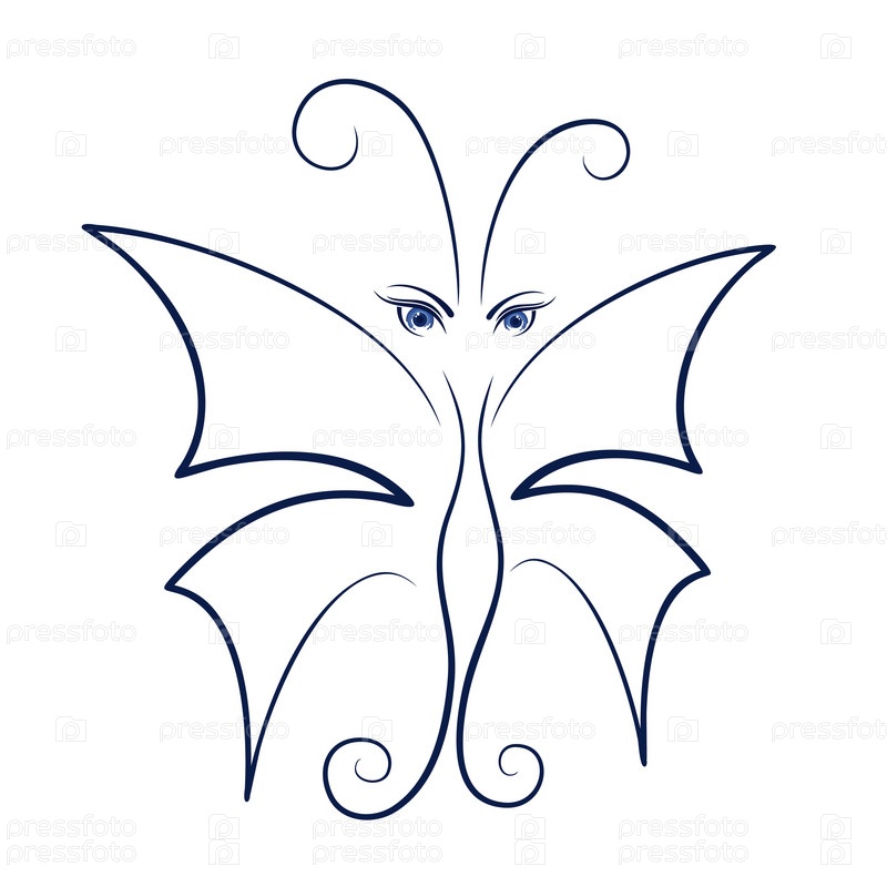 Набросок синей стилизованной бабочки