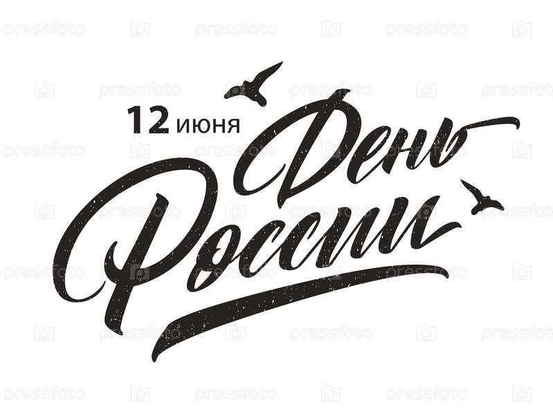 День России - русский праздник. День России рукописные надписи с летающими птицами в небе типографский векторный дизайн для поздравительных открыток и плакатов. Русский перевод: День России