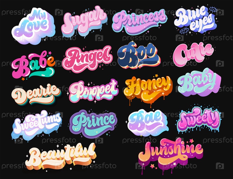 Набор наклеек для ноутбука. Ручная надпись. Его можно использовать для футболок, наклеек, поздравительных открыток. Иллюстрация тщательно оцифрована и готова к использованию. Векторная иллюстрация