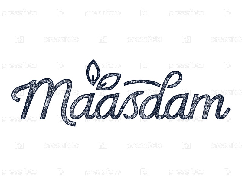 Маасдам. Надпись для упаковки сыра. Каллиграфические надписи ручной работы. Векторная иллюстрация