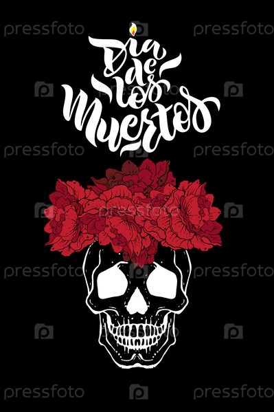 Ручной эскиз надписи Dia de los Muertos (День мертвых) для оформления открытки или праздника