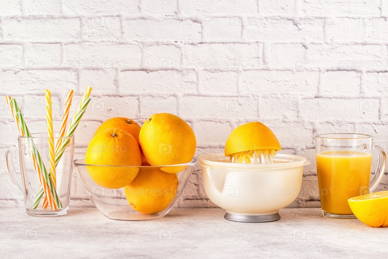 Апельсины и соковыжималка для приготовления апельсинового сока
