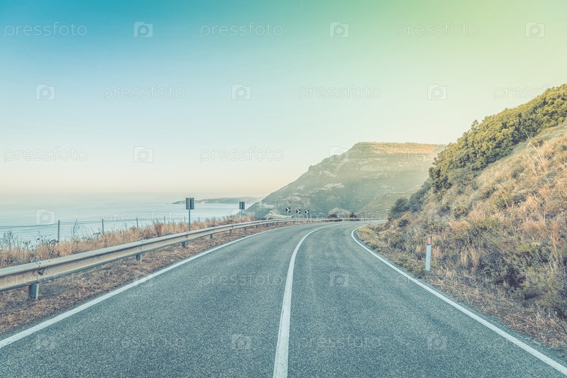 Дорога у моря с голубым небом