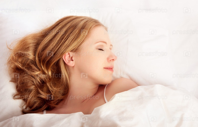 Красивая женщина спит в чистой белой постели