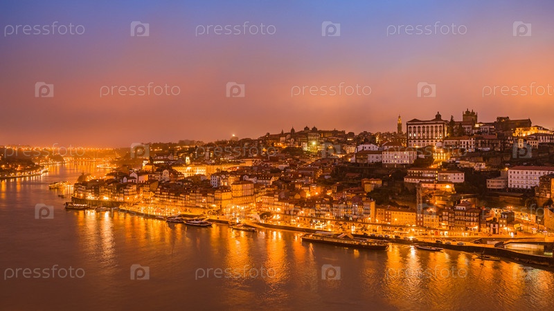Панорама старого города Порту на закате