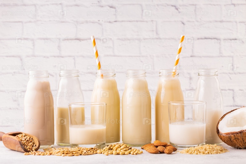 Бутылки альтернативного молока и ингредиента