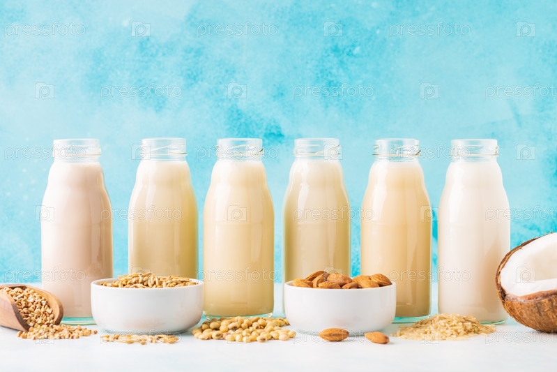 Бутылки альтернативного молока и ингредиента