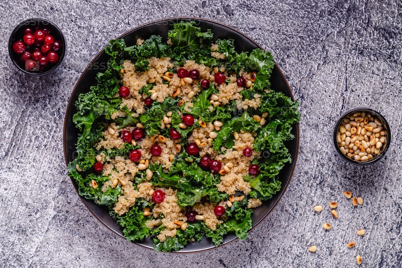 Здоровый салат из сырой капусты и киноа с клюквой и кедровым орехом