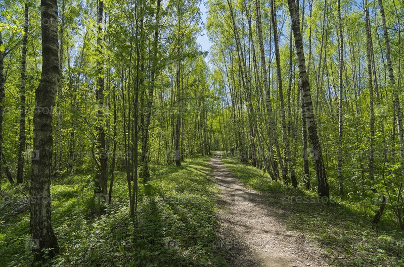 Тропинка в весеннем лесу. Узкое, Битцевский лесопарк, Москва. Солнечный день в мае