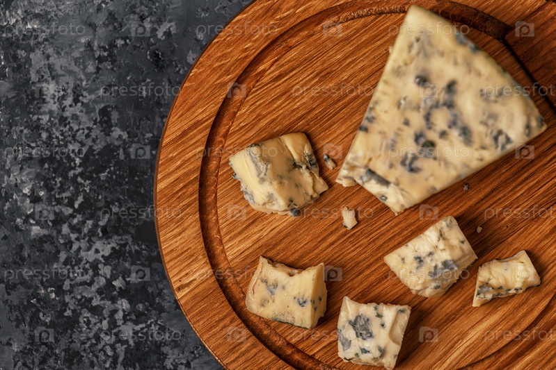 Кусочки голубого сыра на деревянной доске