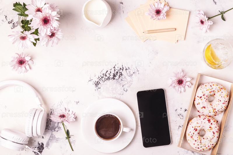 Завтрак - кофе, тефон, наушники