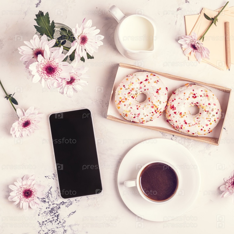 Завтрак - кофе, тефон, наушники