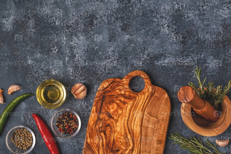 Разделочная доска и специи для приготовления пищи