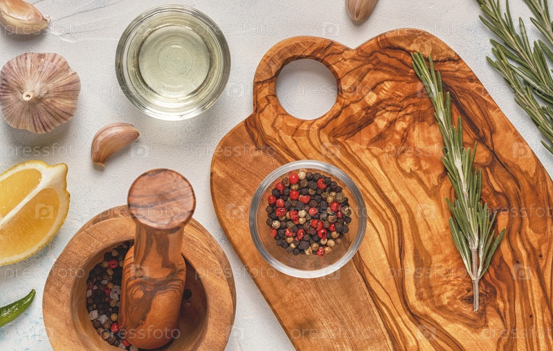 Разделочная доска и специи для приготовления пищи