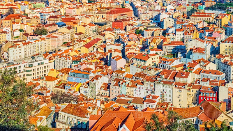 Красочный вид сверху на Лиссабон, Португалия