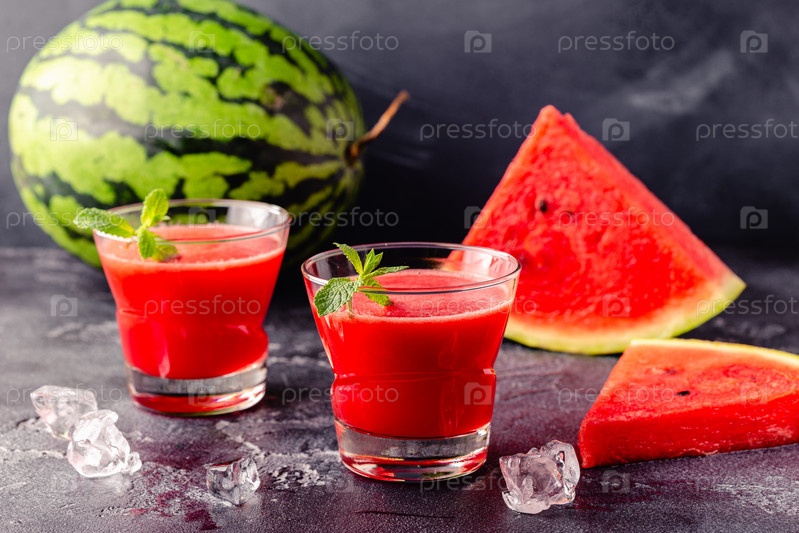 Свежий вкусный вкусный арбузный сок на темном фоне