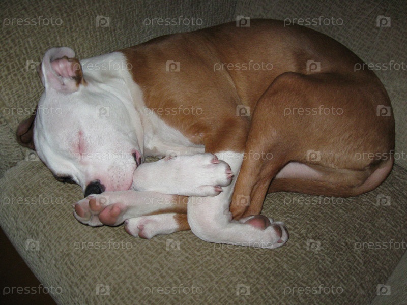 Щенок спит свернувшись калачиком