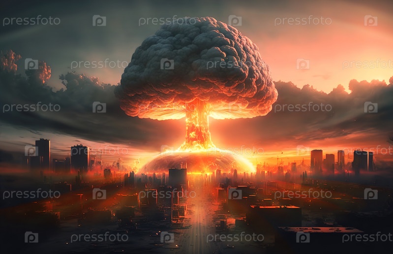 Ядерная бомбардировка огромного города. Начало апокалепсиса. Реалистичная цифровая иллюстрация