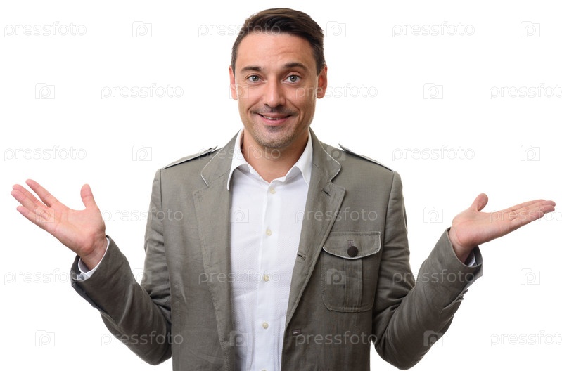 Беззаботный улыбающийся мужчина вскидывает руки вверх