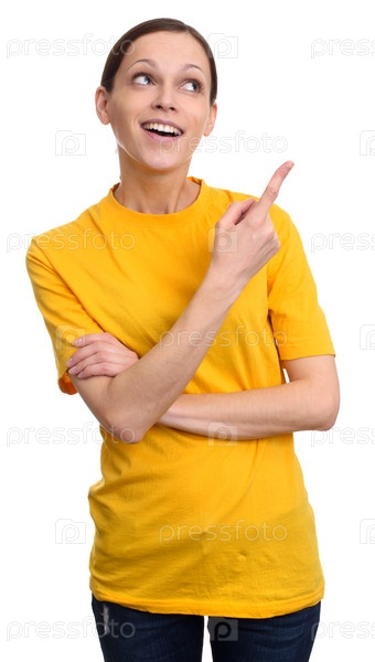 Девушка указывает пальцем на пустую текстовую область