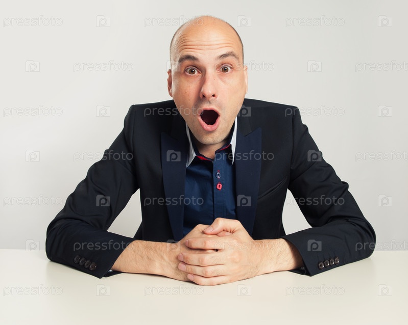 Шокированный лысый бизнесмен