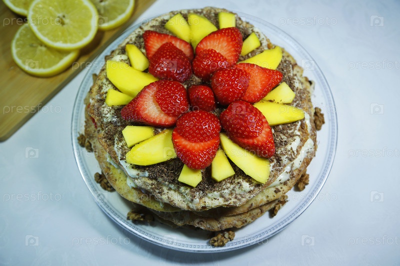 Торт домашний , слоеный с фруктами