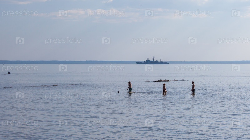 Отдыхают на фоне корабля
