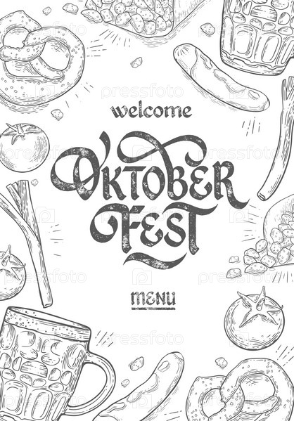 Меню Октоберфеста. Октоберфест, написанный от руки. Меню можно использовать в барах, кафе, ресторанах. В меню представлена традиционная немецкая кухня