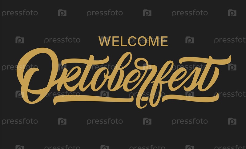 Перевод с немецкого; Добро пожаловать на Октоберфест. Октоберфест рукописные надписи. Векторный баннер фестиваля пива. Празднование шаблона дизайна
