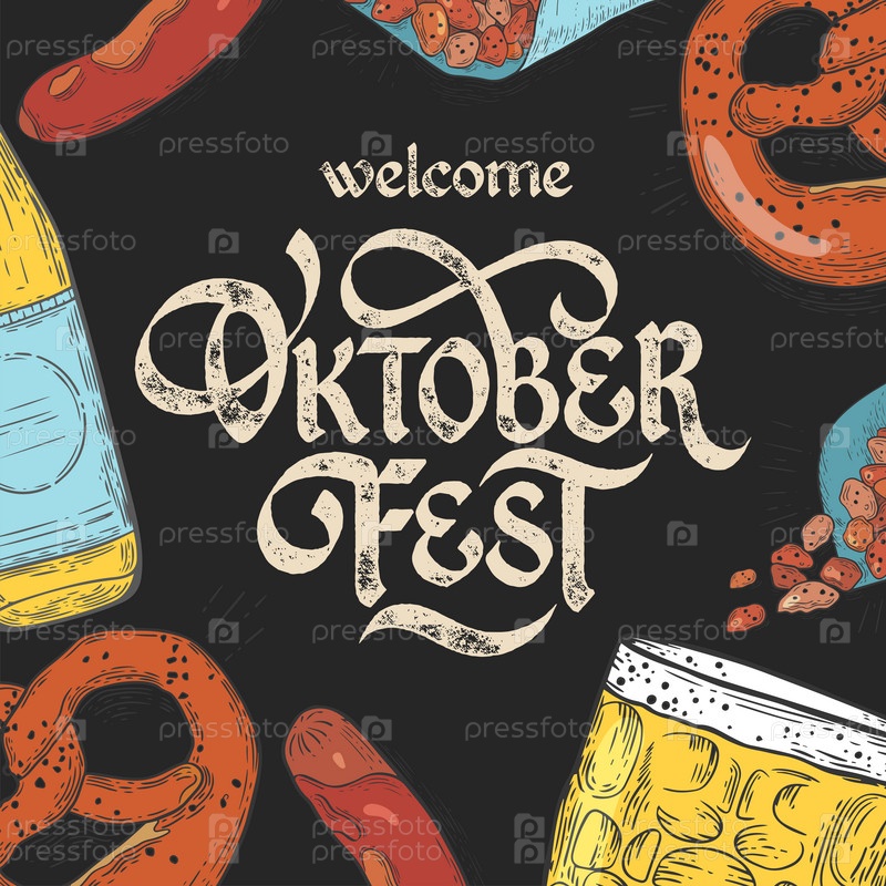 Добро пожаловатьДобро пожаловать на Октоберфест. Векторный плакат с девушкой в традиционном праздничном платье с кружкой пива в руке. Октоберфест. Векторный плакат с девушкой в традиционном праздничном платье с кружкой пива в руке