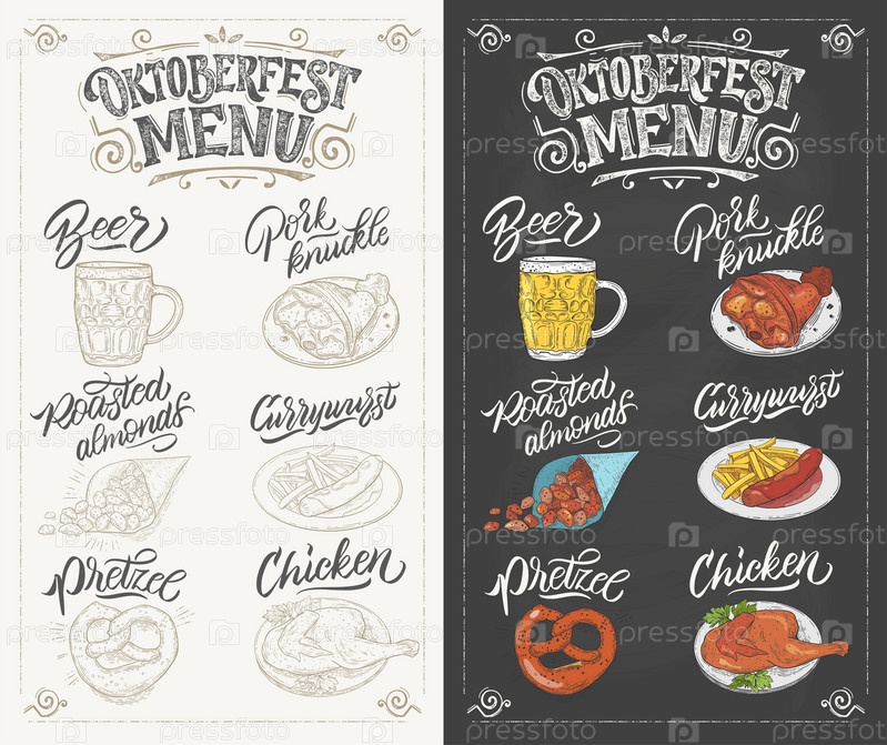 Меню Октоберфеста. Октоберфест, написанный от руки. Меню можно использовать в барах, кафе, ресторанах. В меню представлена традиционная немецкая кухня