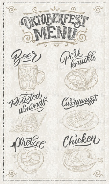 Меню Октоберфеста. Октоберфест, написанный от руки. Меню можно использовать в барах, кафе, ресторанах. В меню представлена традиционная немецкая кухня