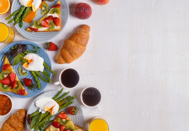 Стол с завтраком, вид сверху