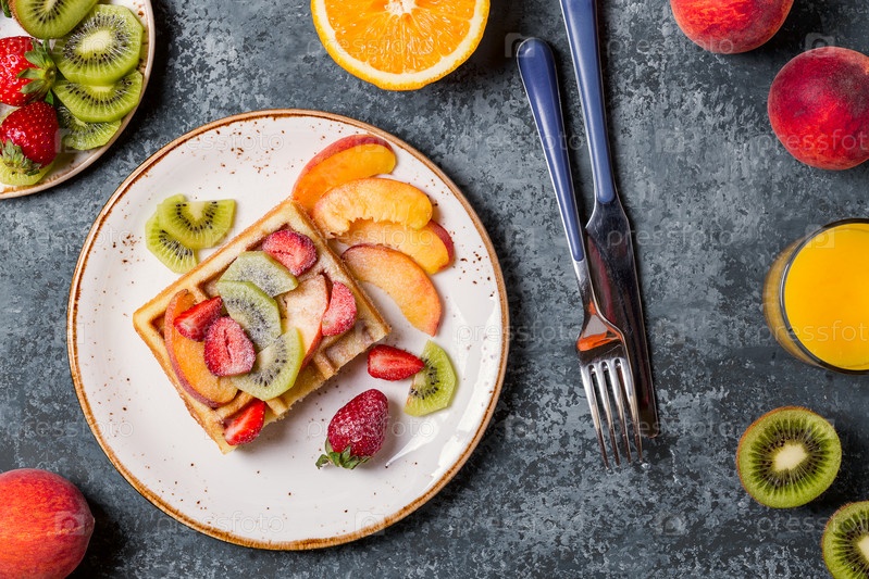 Вафли на завтрак со свежими фруктами