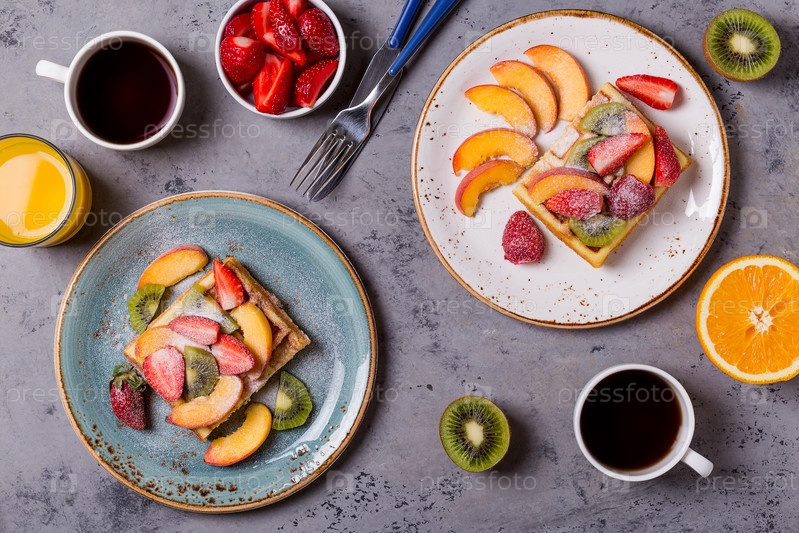 Вафли на завтрак со свежими фруктами