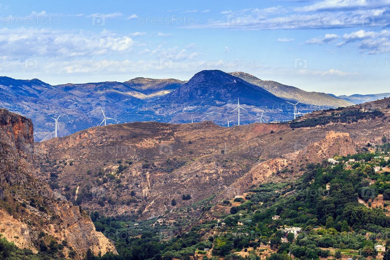 Пейзаж с группой ветряных мельниц