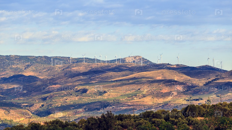 Пейзаж с группой ветряных мельниц