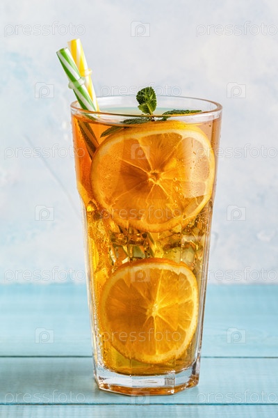 Холодный чай с дольками лимона и мятой