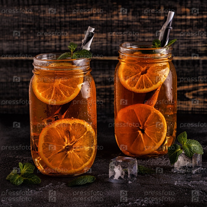 Холодный чай с дольками лимона и мятой