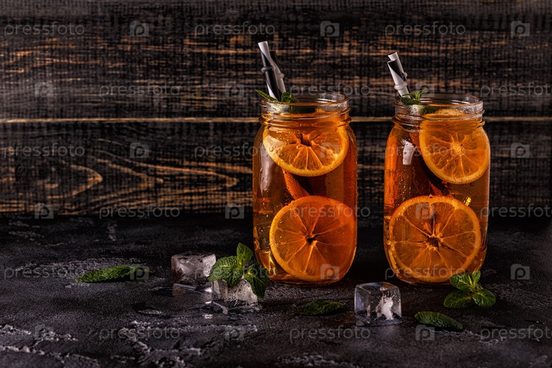 Холодный чай с дольками лимона и мятой