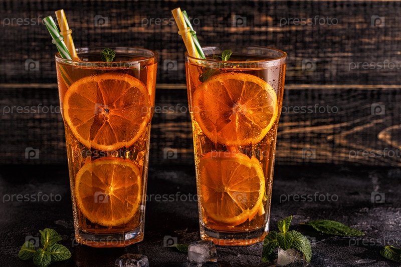 Холодный чай с дольками лимона и мятой