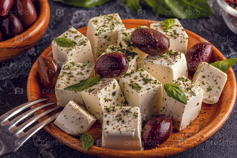 Греческий сыр фета с орегано и оливками