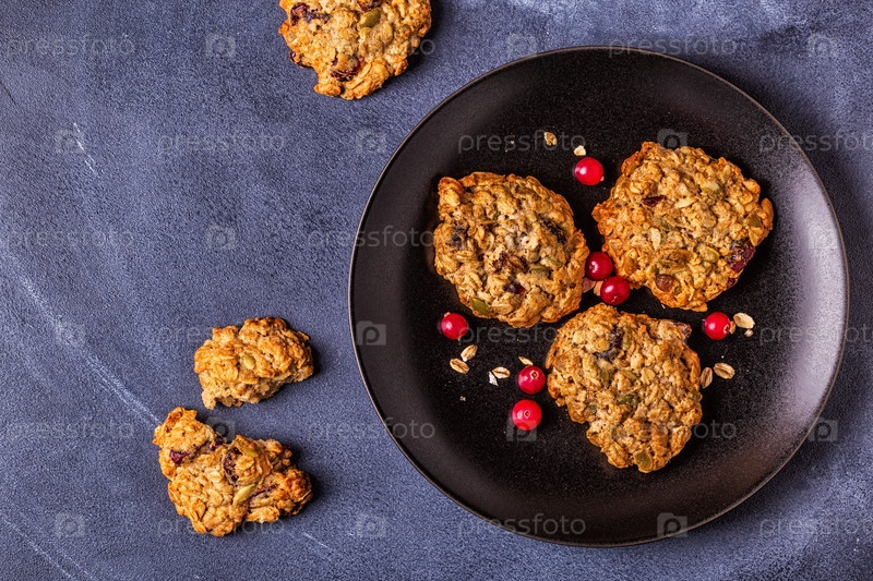 Домашнее овсяное печенье с клюквой и тыквенными семечками
