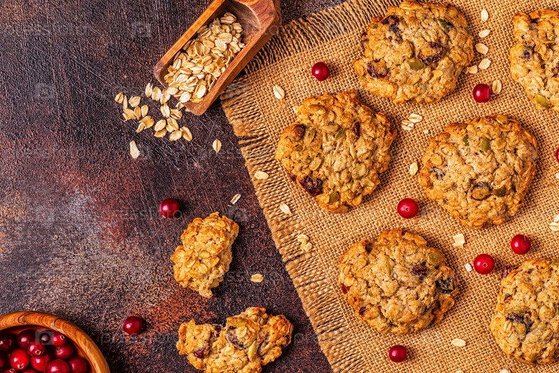 Домашнее овсяное печенье с клюквой и тыквенными семечками