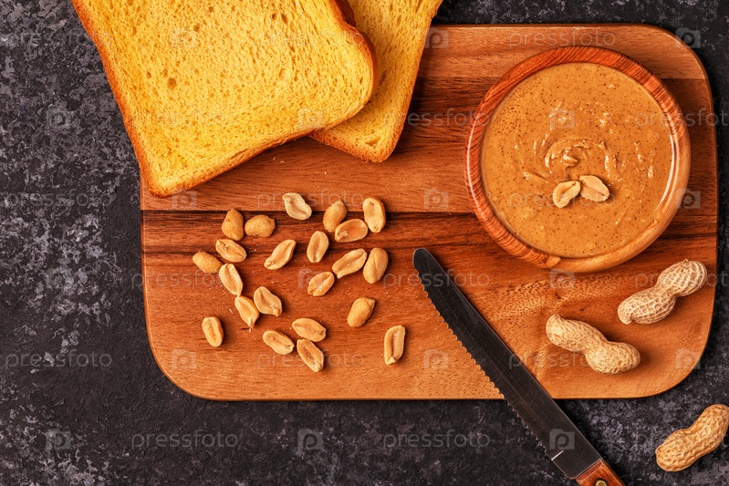 Чаша арахисового масла на деревянной доске